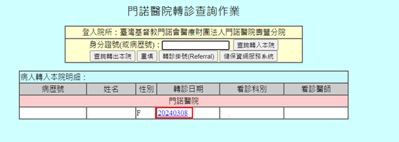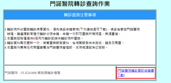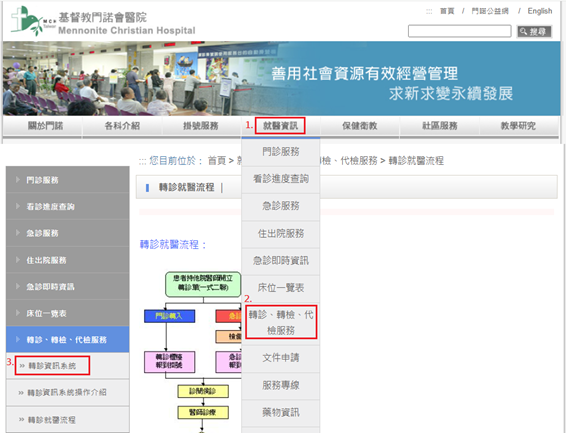 門諾醫院首頁->就醫資訊->轉診服務->轉診檢資訊系統