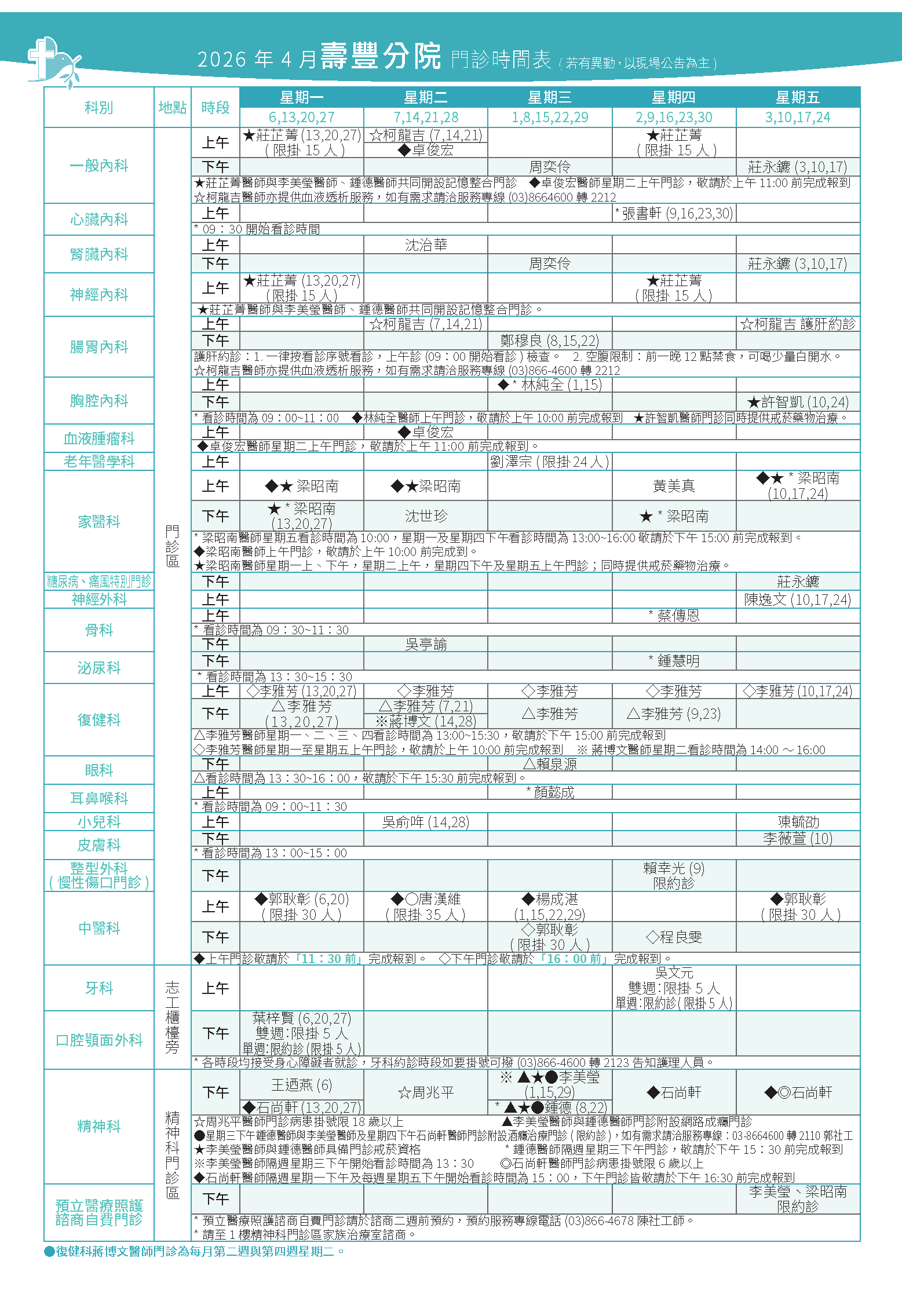 更新日期:2026/03/26 公告單位:壽豐-行政室