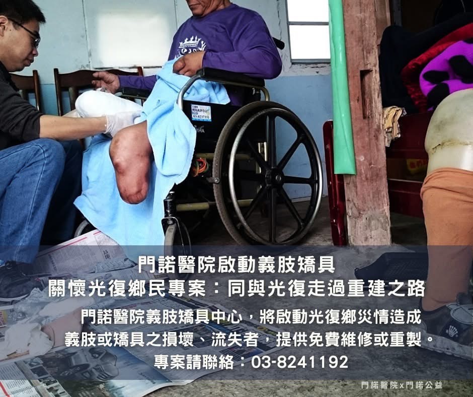目前,門諾醫院設立於馬太鞍教會的臨時醫療站,將持續服務到 10月11日。無論是傷口換藥、慢性病藥物需求,或是一般診療,鄉親都能安心前往,醫療團隊會持續陪伴大家,一起走過災後的復原之路。此外;門諾醫院義肢矯具中心也同步投入支援,協助需要義肢維修或矯具調整的居民。若有需求,可電洽 (03) 824-1192,讓專業人員安排合適的服務,確保每位受災民眾都能獲得貼心且完整的照顧。