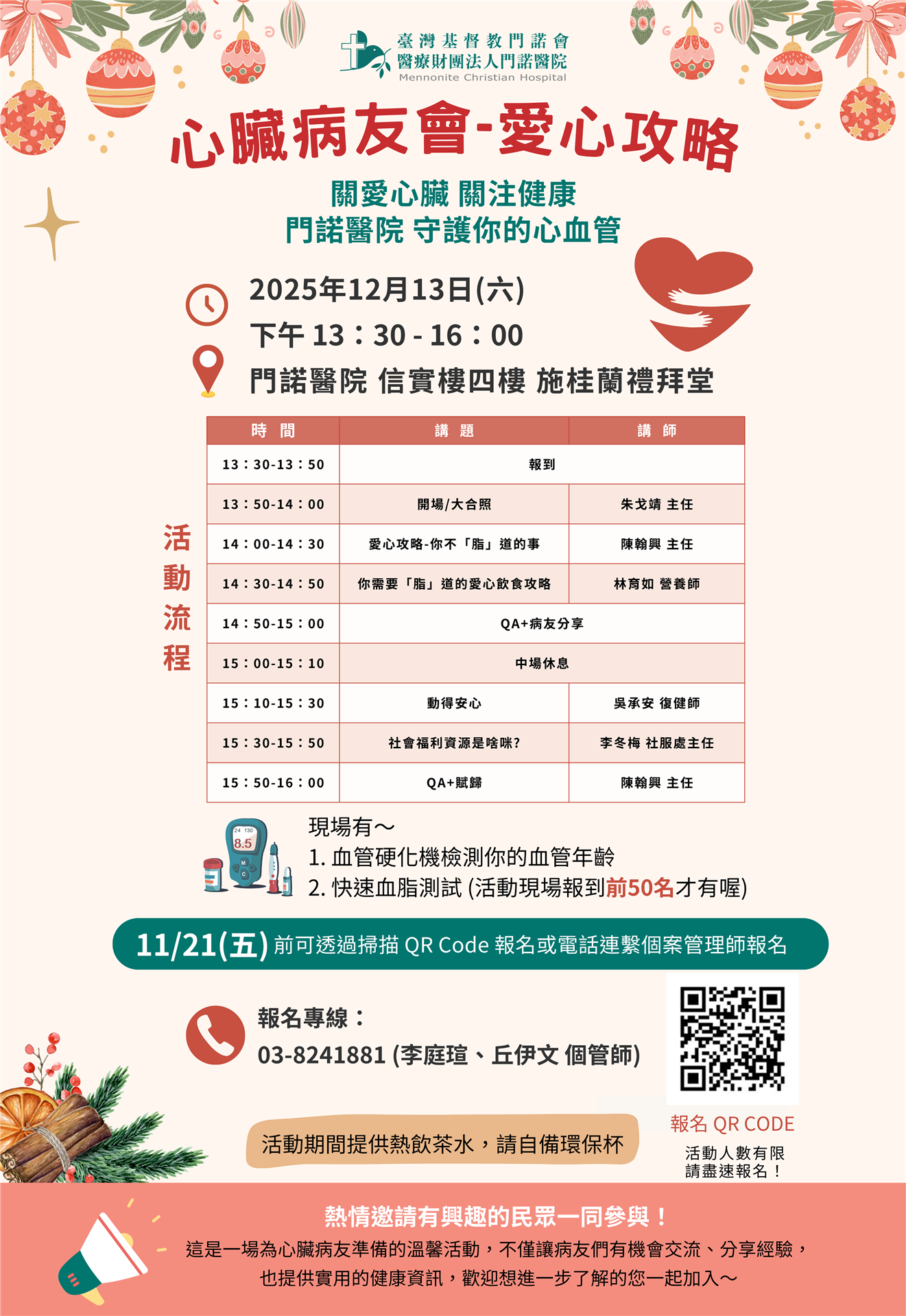 本網站內容為財團法人臺灣基督教門諾會醫院暨相關事業機構所有,未經受權,禁止轉載
