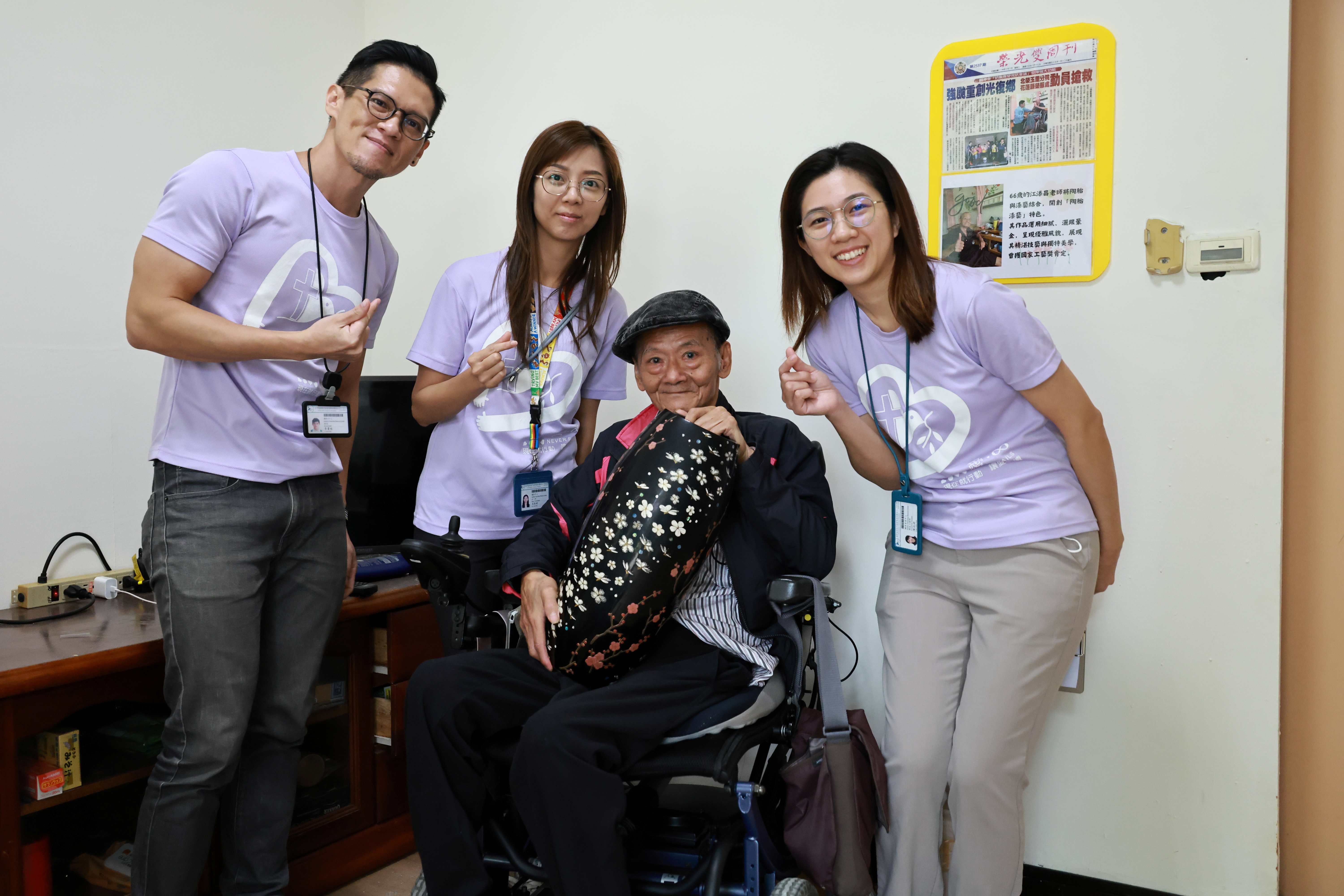 正是在這樣最脆弱的時刻,門諾醫院長照部立即伸出援手。除了緊急調度院內輔具,社工師呂凱婷與職能治療師陳玟婷也全程陪伴,協助聯繫、評估生活需求、協調後續安置資源,讓他在混亂中重新感受到被接住、被守護的力量。他忍不住開玩笑說:「我那時候真的覺得,是天使來了。」