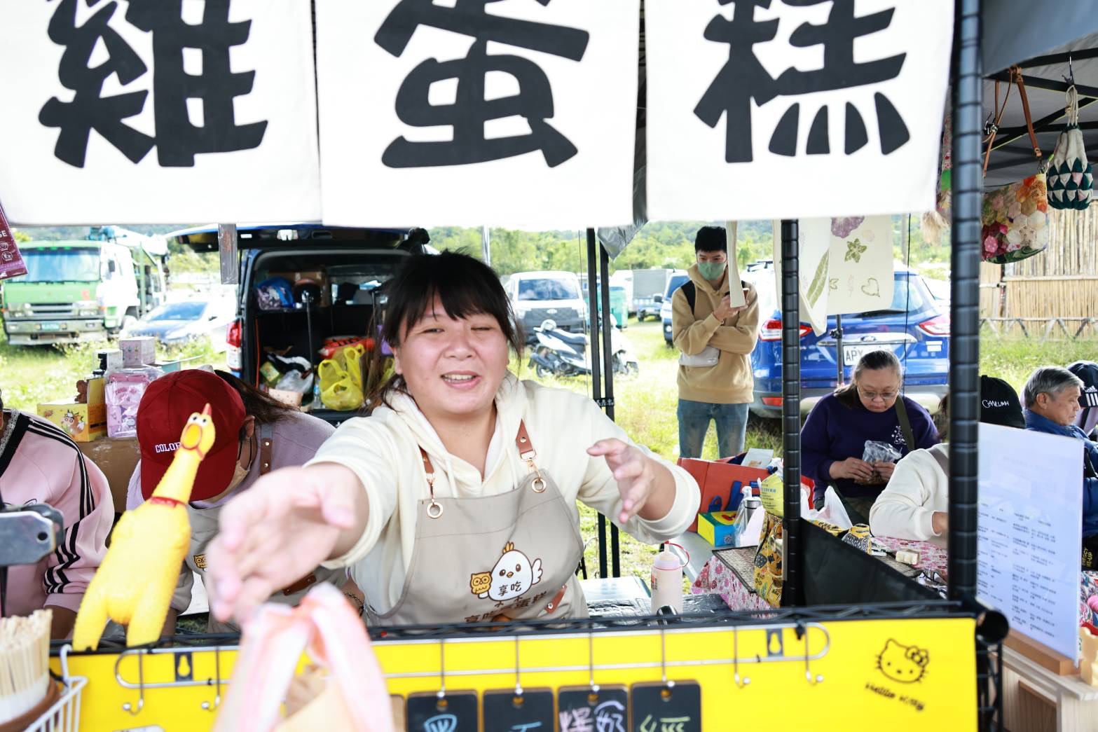 市集中,「享吃雞蛋糕」的香氣,混著暖暖的人情味。負責人筱涵,是光復災民之一。0923那天,她剛買的新車被洪水沖走。她哭,不只是為了車,而是為了今年初離世、一路支持她創業的父親。水退後,屋內是一人高的泥砂,生財工具全毀。很多人會停下來,但筱涵沒有。她貸款,買了一模一樣的車,只因為想再試一次。她強調:「沒有那些來幫忙鏟土的超人,我走不到今天。」她推著攤車站在人群裡,臉上是笑的。她說,能在這裡擺攤,本身就是一種平安。