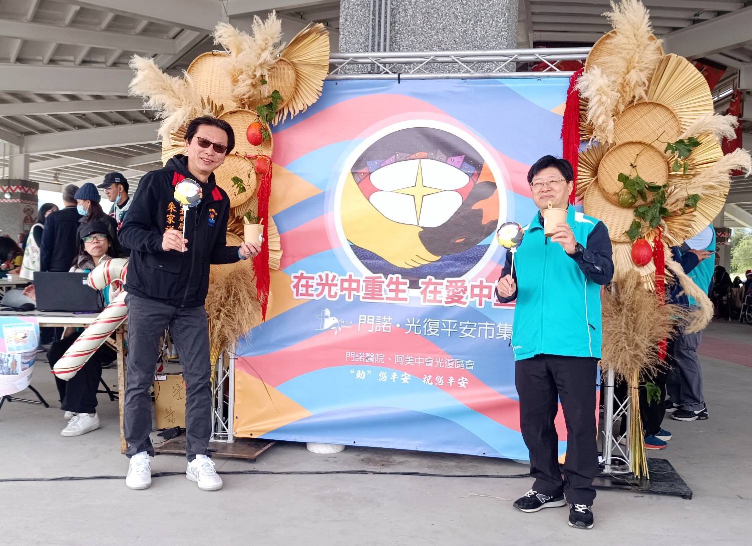 923光復洪災重創在地生機,門諾醫院今天(28日)上午在光復鄉太巴塱祭祀廣場舉辦「在光中重生、在愛中重建」平安市集,邀集超過70家攤商齊聚一堂,其中八成以上來自光復。對許多人來說,這不只是一場市集,更像一場久違的團圓。有災民感嘆:「好久沒看到這麼多人了!」。災後的寂靜,被這一天的人聲與陽光溫柔打破。「身體慢慢好了,心跟生活,也要一起站起來」!