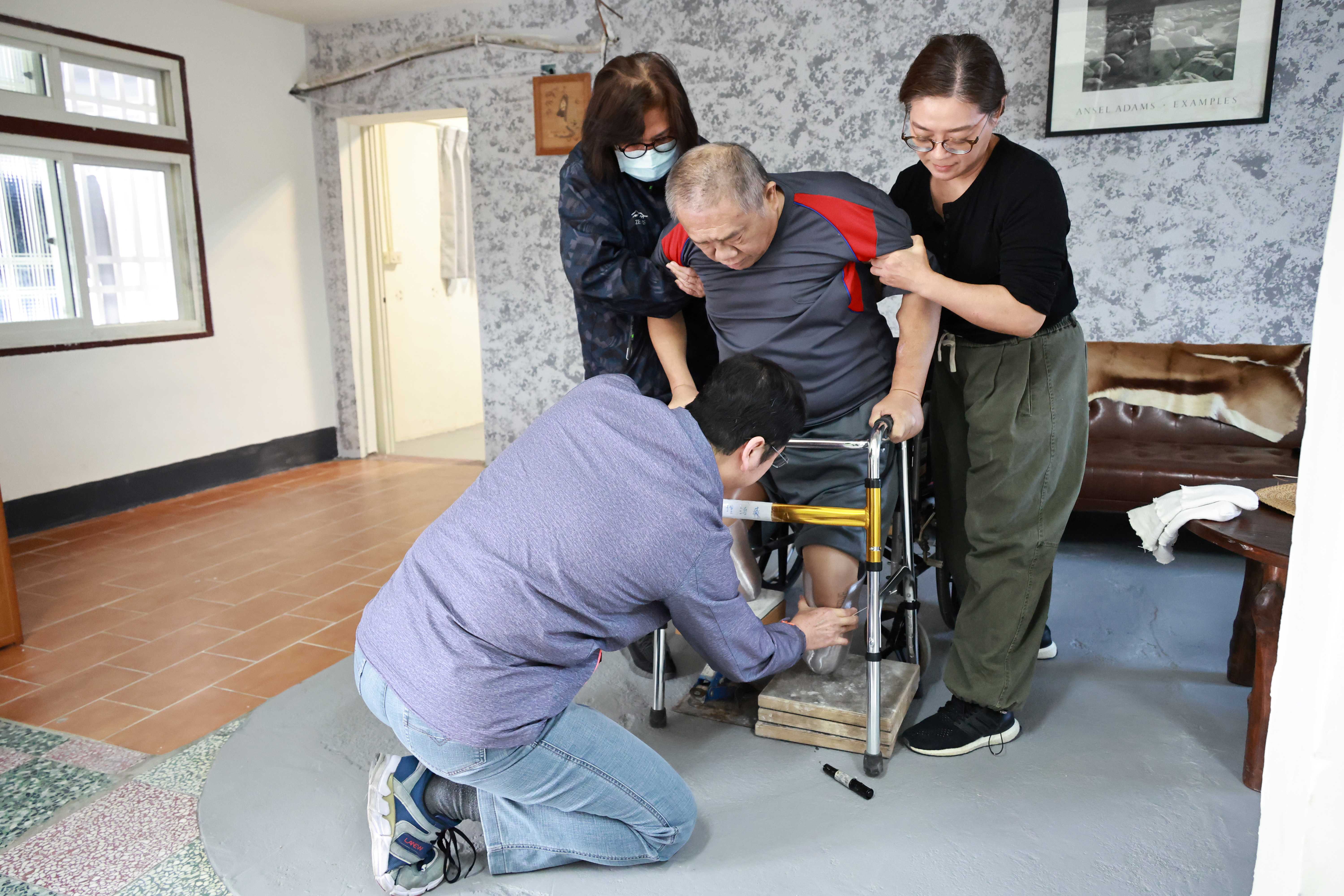 災後家園難復,返家無門,院方再協助轉介至護理之家,安排獨立套房,方便妻子照料,並提供21天喘息住院照護。從急性醫療、術後照顧到生活安置,醫療與照護一環接一環銜接,從水災發生到真正返家,前後將近兩個月,始終不讓他獨自承受。門諾醫院義肢矯具團隊的加入,讓徐大哥再度找回信心。得知義肢在洪災中流失,團隊主動提出無償協助,為他重新製作一雙全新義肢,從取模、套量、反覆調整,到安排復健訓練,全程細心完成。