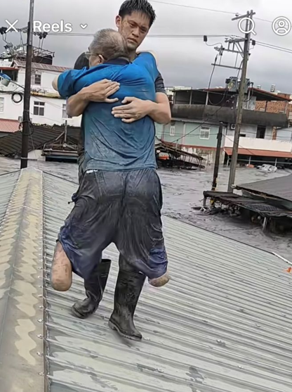 水位持續上升,情況急轉直下。姪子先將徐太太攙扶上屋頂避難,再回頭搶救徐大哥。折返時,水已淹到他的胸口,而他仍坐在輪椅上。「輪椅開始浮起來了。」徐大哥回想,當下腦中一片空白,只擔心一個不穩,就再也回不了頭。
