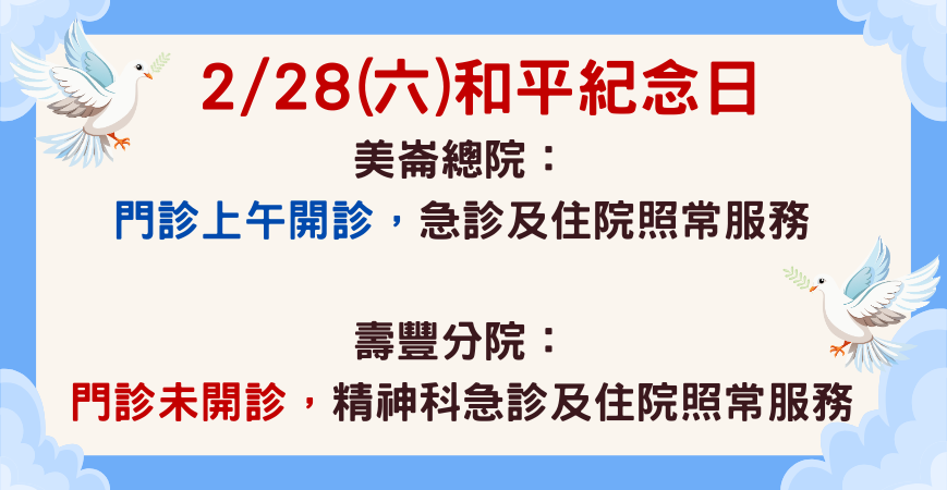 2/27(五)-2/28(六)228連假,本院及壽豐分院開診公告