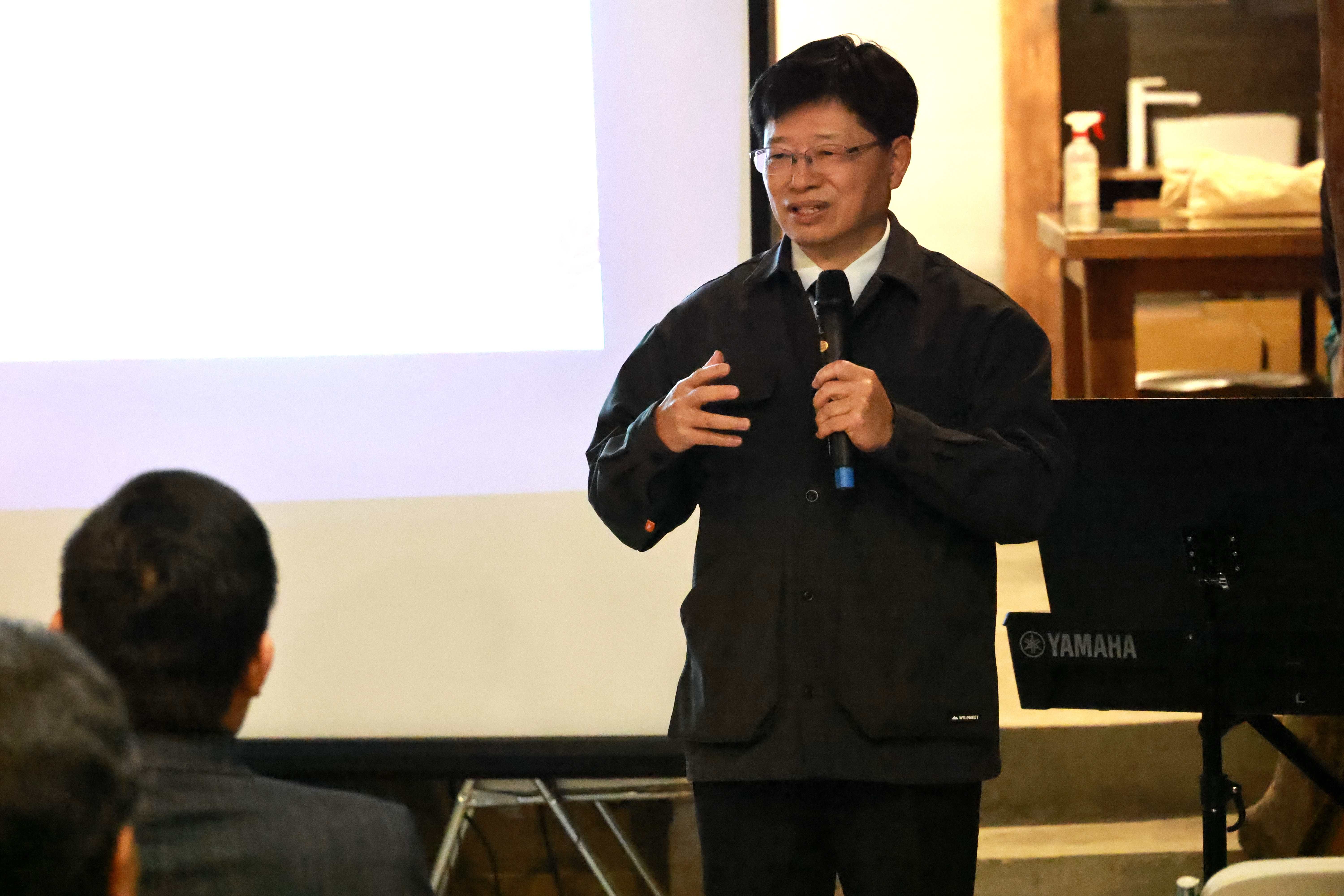 啟用禮拜在詩歌與禱告中展開。牧者感念洪災最危急時,醫療團隊平安進入災區,也為這間辦公室祝福,期盼成為榮神益人之地,讓光復在風雨後迎來真正的復興。