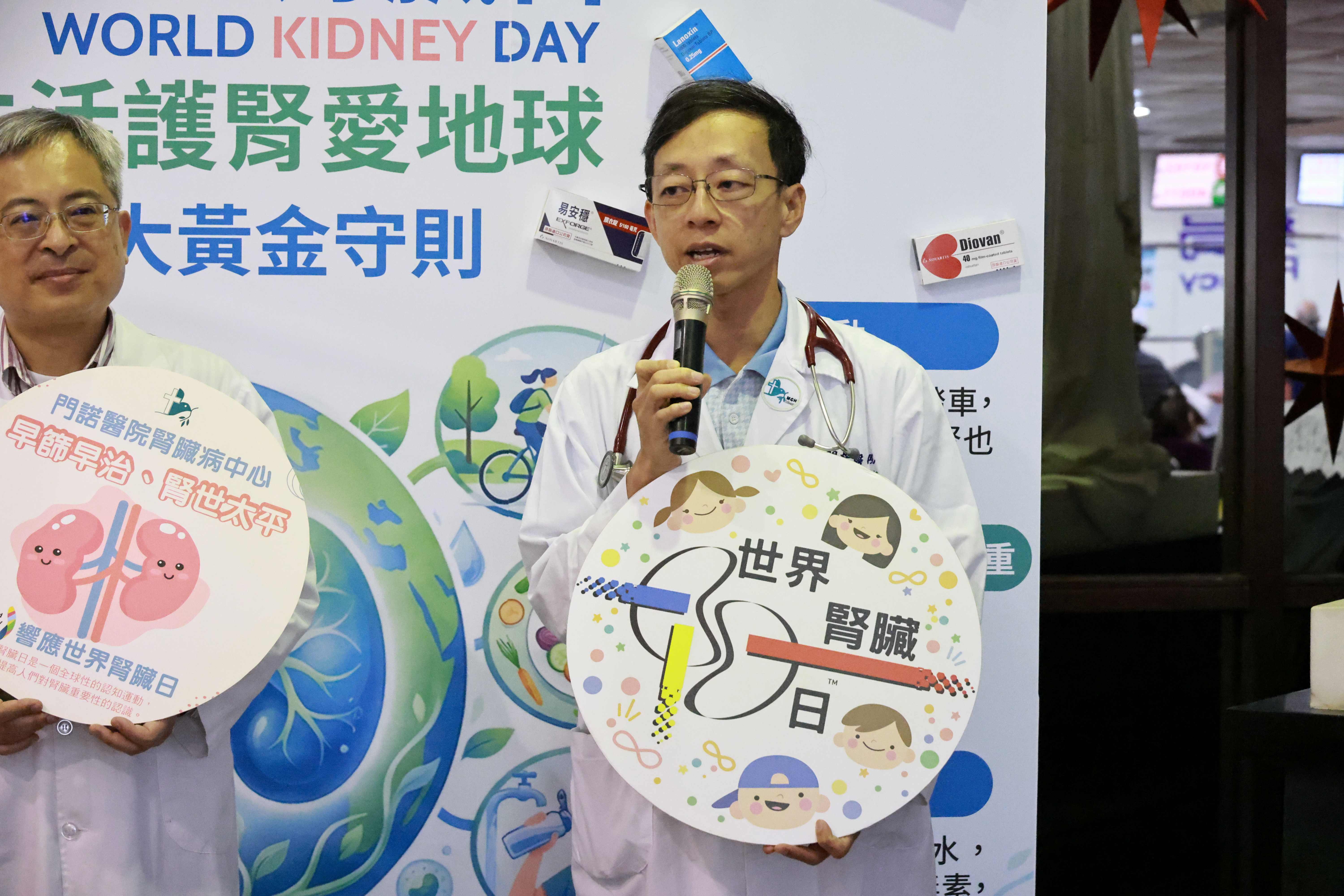 門諾醫院副院長王志弘表示,腎臟是人體重要的代謝器官,負責過濾血液中的廢物與多餘水分,但因早期症狀不明顯,常常被忽略。許多患者直到身體出現水腫、疲倦或健康檢查異常時,才發現腎功能已經明顯下降。因此透過世界腎臟日舉辦宣導活動,希望提醒民眾平時就要關心腎臟健康。