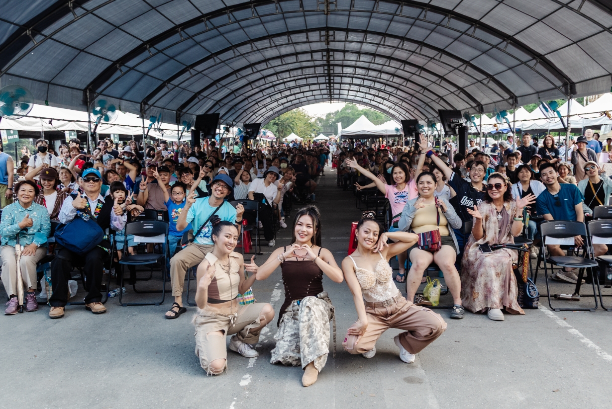 市集現場人聲鼎沸、熱鬧滾滾,人潮在攤位間絡繹不絕。其中,來自蘭嶼椰油國小-小飛魚文化展演隊帶來的歌舞表演格外令人印象深刻。孩子們身穿傳統服飾,踏著輕快節奏登場,純粹而清亮的歌聲彷彿帶著海風的氣息,緩緩吹進人群,也觸動在場民眾的心。帶隊老師表示:由於蘭嶼經常面對風災侵襲,對於災後重建的艱辛有著深刻體會,他們希望將這份感同身受化為歌聲與舞步,用最純真的方式傳遞祝福與力量。活動現場有人停下腳步凝神聆聽,有人露出微笑輕聲應和,在一來一往的歌聲中,一起為光復加油!